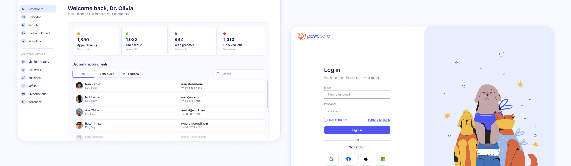 Easily track each pet’s medical history, vaccinations, visits, and treatments in one secure, digital profile.